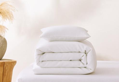 Leinen wirkt von Natur aus antibakteriell, ist atmungsaktiv, temperaturausgleichend und besonders feuchtigkeitsregulierend. Es nimmt Feuchtigkeit schnell auf und gibt sie wieder an die Luft ab – für ein angenehm trockenes Schlafklima.