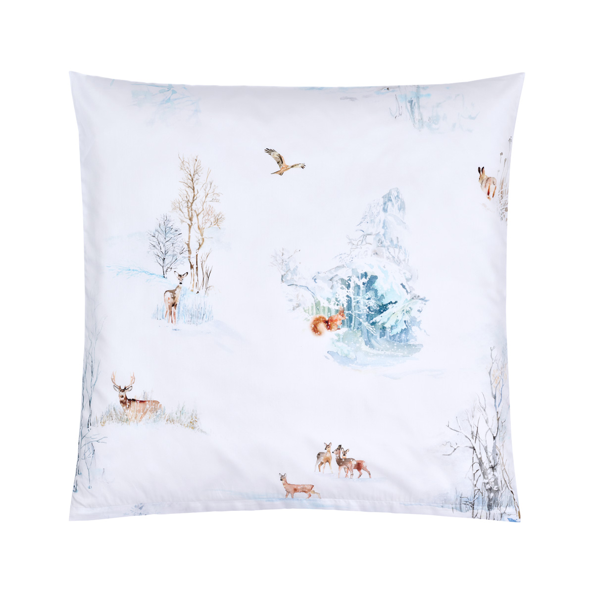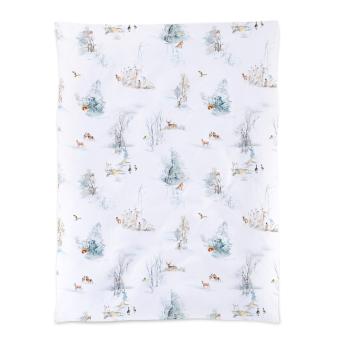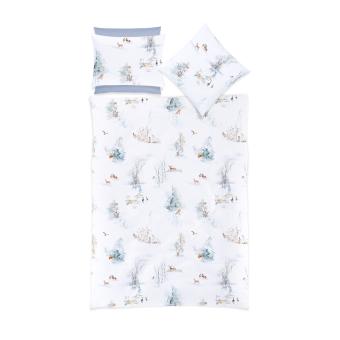 Finja ist ein bezauberndes Druckdesign, das in der beliebten Tradition der Christian Fischbacher Handschrift steht. Feine Pinselstriche erwecken Eichhörnchen, verschneite Zwergbirken und die Spuren von Wildgänsen im Schnee zum Leben. Ein majestätischer Rotmilan kreist über der winterlichen Landschaft. In sanften Beige-, Braun- und Blautönen wurden die Wintermotive künstlerisch auf weissen Fond gemalt und laden zum Träumen ein.