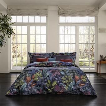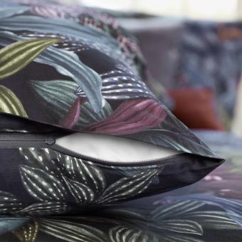 Durch das dichte Blätterwerk der Bettwäsche ARAMIS rauscht ein geheimnisvolles Flüstern, doch könnte es auch das sanfte Säuseln des Windes sein. Dieser vielfältige Fantasiewald aus Gouachefarben in leuchtendem Kupferrot, Magenta, Olive, Seegrün und Royalblau wirkt auf dem Satin-Gewebe oder aber auch auf dem Jersey-Stoff magisch anziehend. Während Sie die dunklen Blautöne in die Tiefen Ihrer eigenen zauberhaften Traumwelten begleiten, lenken hell aufleuchtende Akzente Ihren Blick immer wieder gekonnt ab.